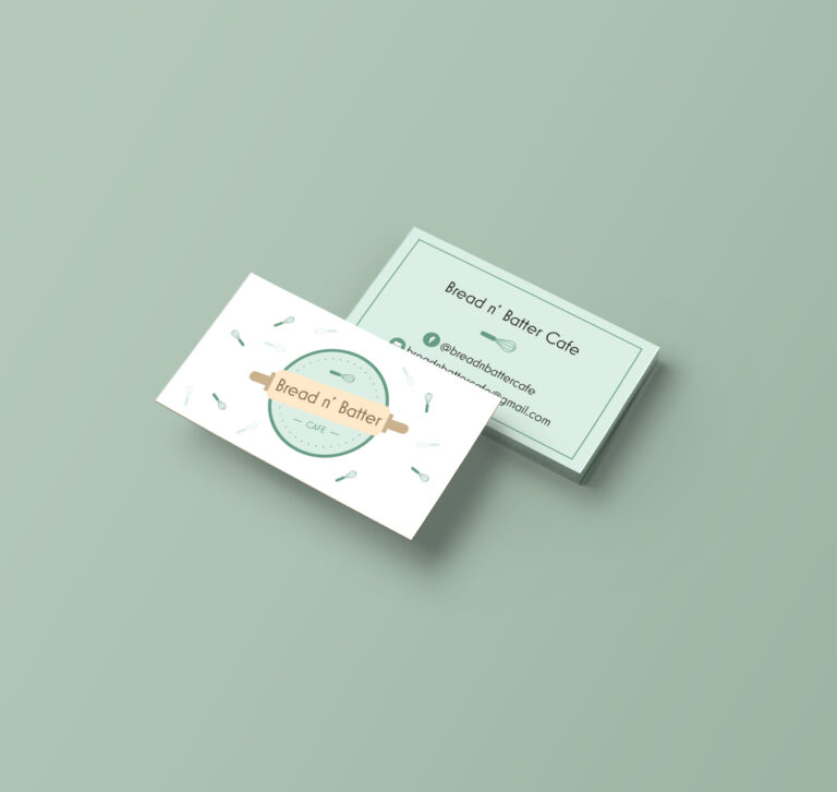 This is a logo and business card design for Bread n’ Batter Cafe. The client wanted a fun and professional style for their baking and home goods business.